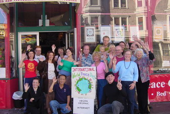 Her hosting of conversations started about six years ago and has evolved into what it is today. A round "Conversation Table" is always prominent up front in the café and people are encouraged to invite strangers from other tables or somebody they met the previous day to join in the conversation. "We take "anybody God sends thru the door" They come from all over the world. Many times they come to stay in our Peace Bed & Breakfast and to experience our famed Haight Street , home to the Summer of Love in1967. We look for differences in culture, race, gender, age.