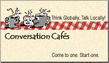 Half Sheet Flier packed with information about Conversation Cafés: what they are, why and how to join or start one, process & agreements, tips, quotes from enthusiastic participants. Print single or double sided depending on your needs and hand out at public events everywhere! Download the half-sheet flier as a pdf file.
